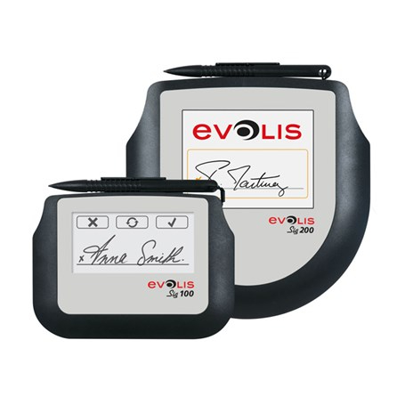 The Evolis Signature pads digitize the signatures in high resolution and can be used to record bio-metric data, such as writing speed and pressure for forensics expertise. Secure data transfer between the pads and the computer is ensured using AES (Advanced Encryption Standard).